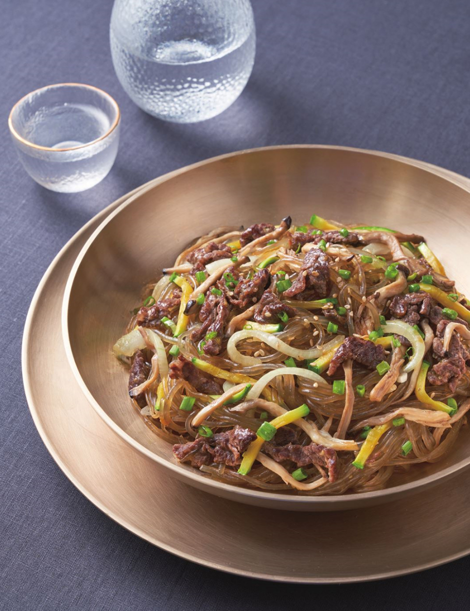 가운데가 움푹한 원형 또는 타원형 접시에 푸짐하게 쌓듯이 담고, 깻가루를 솔솔 뿌리면 맛깔스러워 집니다. 알록달록한 잡채와는 달리 버섯을 종류별로 다 넣고 갈색빛이 도는 잡채는 다른 매력으로 고급스러워 보인답니다.