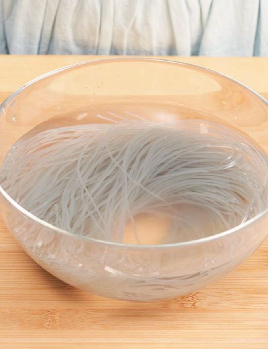 ① 당면은 찬물에 담가 1시간 이상 흐물해질 때까지 불립니다.