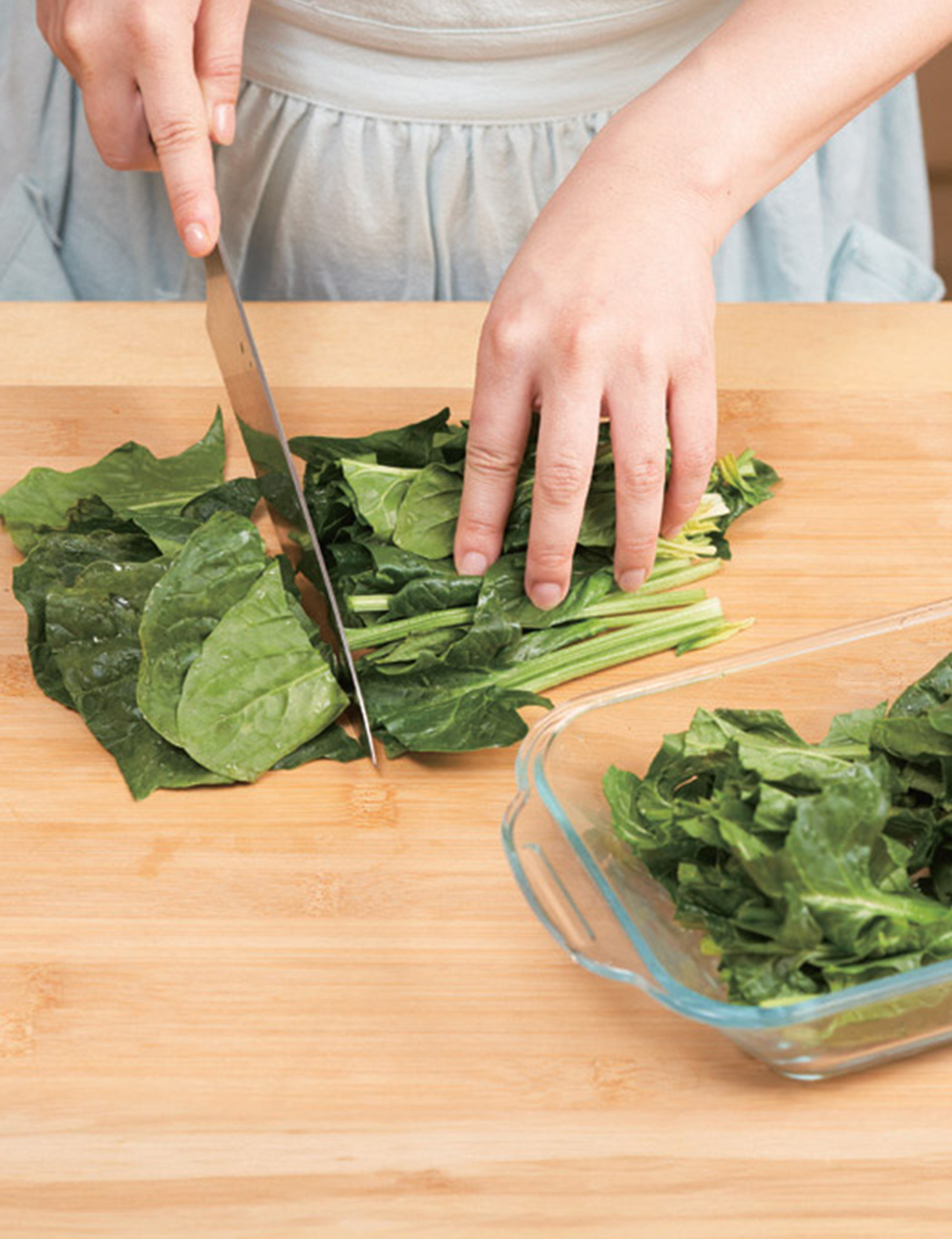 ① 시금치, 참나물은 깨끗이 다듬고 씻어 4cm 길이로 자릅니다.