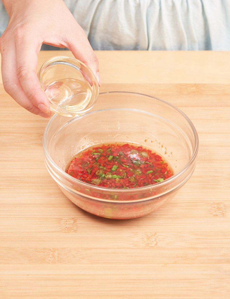 소스: 피시소스 1T, 연두순 1T, 알룰로오스 1T, 라임즙 1T, 식초 1t, 고운 고춧가루 1T