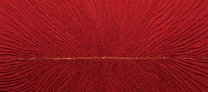 오지윤 작가는 존엄한 만생의 근원인 바다를 모티프로 인간의 감정과 번민을 단색조로 풀어냅니다. 캔버스 위에 한지를 수없이 겹치는 노동집약적 방식으로 거칠고 입체적인 질감을 만들어내고, 그 위에 순금·다이아몬드·진주 가루로 인간 존재의 존엄을 새깁니다. 깊고 오묘한 색의 층위는 관객을 압도하며, 단색임에도 끊임없이 변화하는 빛과 감정의 파동을 품습니다. 오지윤 작가의 작품은 번민과 구원의 경계에서, 인간이 지닌 근원적 생명력과 숭고함을 강렬하게 증언합니다.